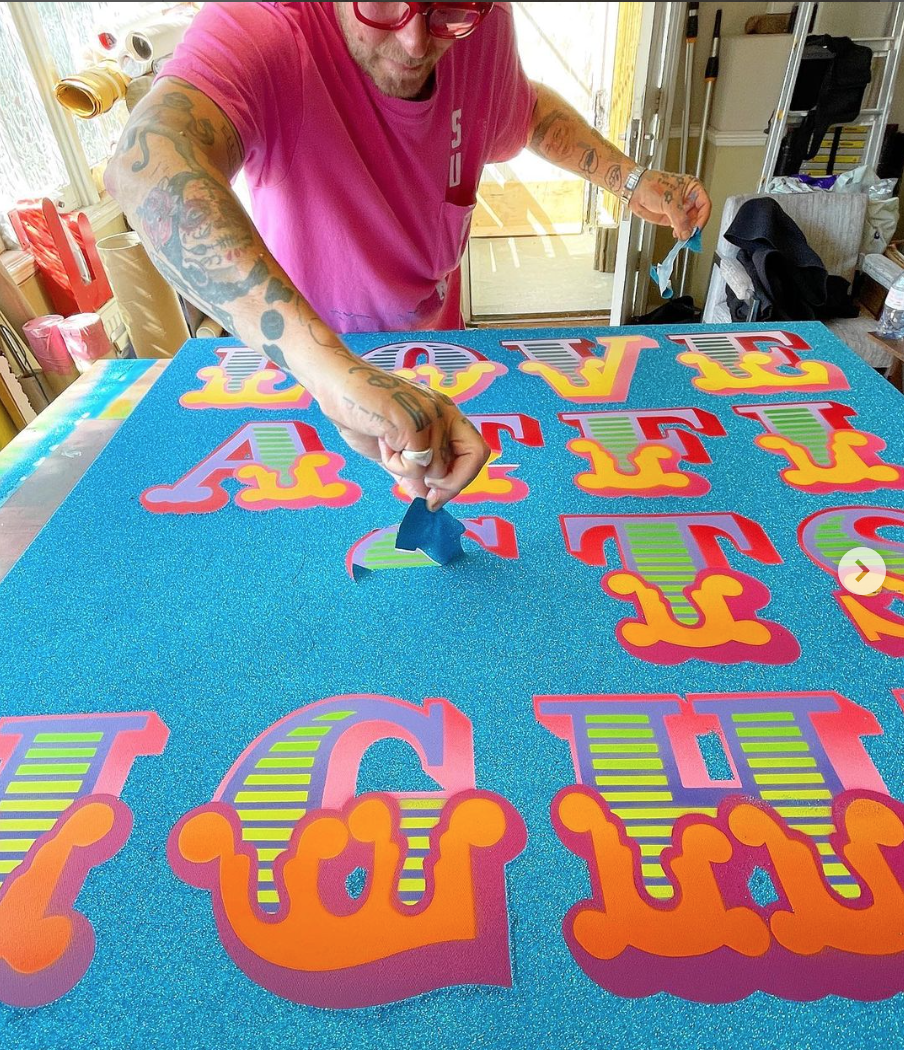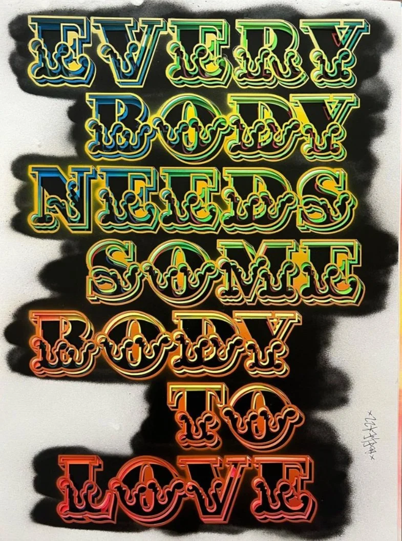 Ben Eine, (British) is a leading figure in contemporary typography art, initially making his mark as a graffiti writer over 30 years ago. He gained recognition for his distinctive typographic style, painting vibrant and oversized letters on shutters across East London. His innovative approach, marked by a "graffiti mentality," played a key role in the rise of street art's popularity.